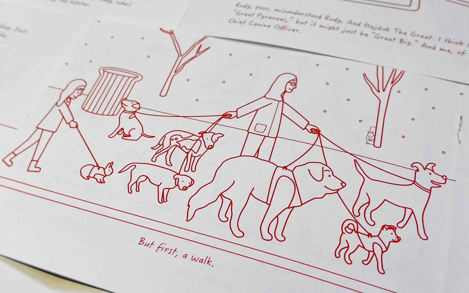 Instead of generic holiday cards, Factory Detroit sends a festive, hand-drawn storybook about Chief Canine Officer Ella’s quest for her true love: cookies. I illustrated the final 4 installments, leading up to Ella’s ultimate trip to the North Pole.