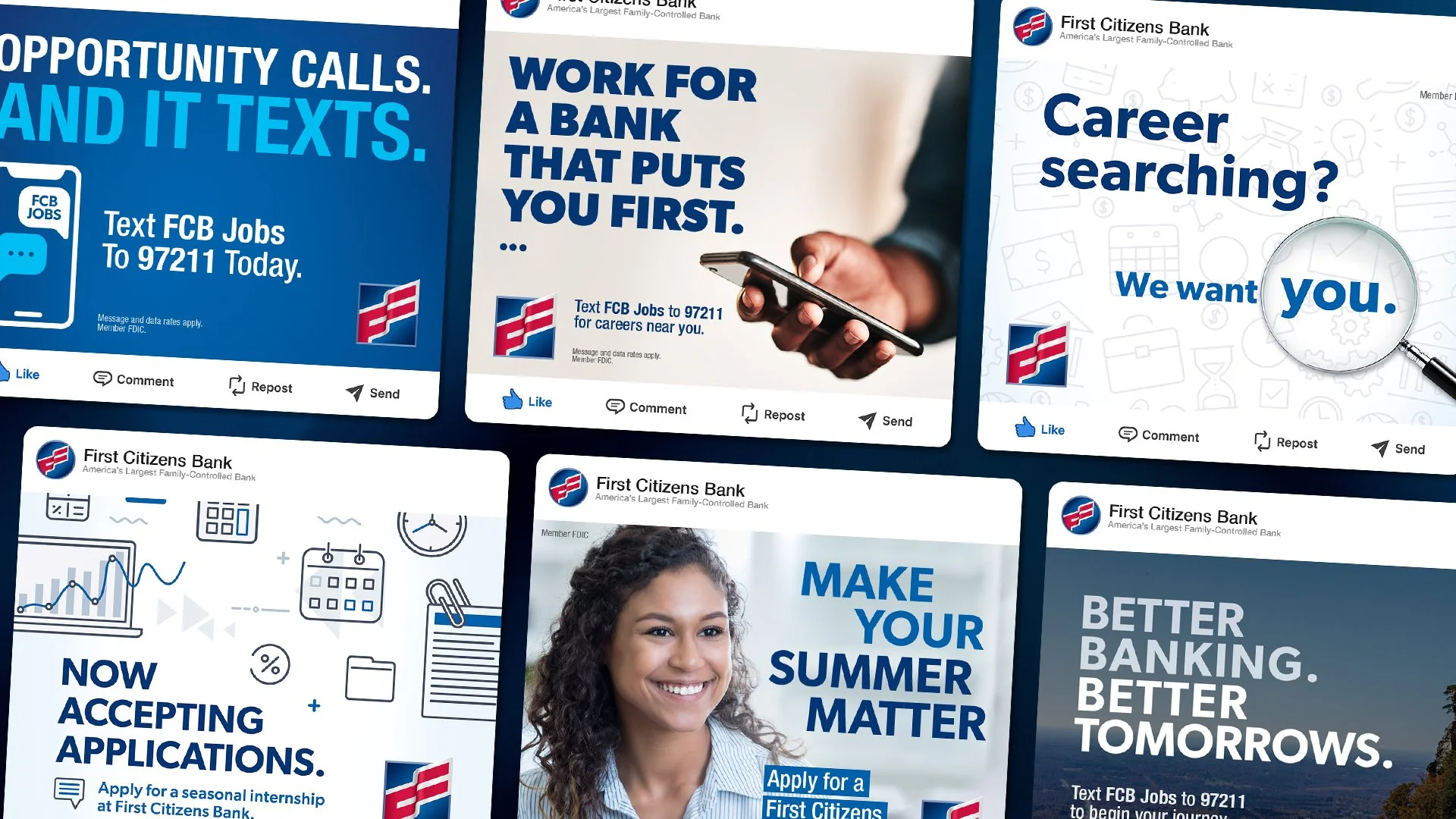 First Citizens launched an online career portal to simplify job searches and applications. These posts target both entry-level candidates and experienced sales/service professionals, highlighting career stability and growth opportunities.
